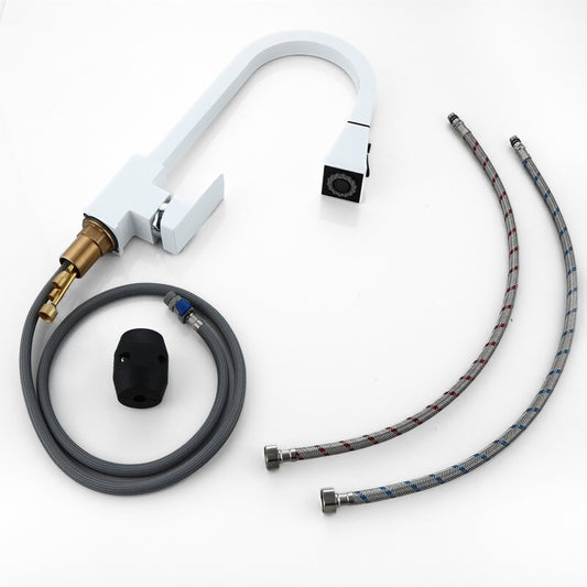 Mischbatterie Küche mit quadratischem weißen Schwanenhals und Brause