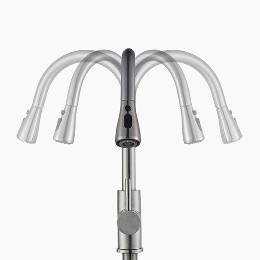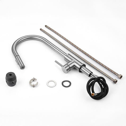 Küchenarmatur mit ausziehbarer Brause und Schwanenhals aus Edelstahl
