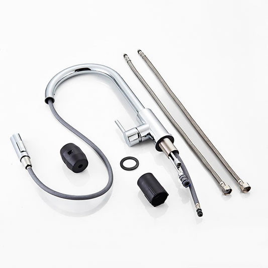 Grifo mezclador de cocina con rociador extraíble cuello de cisne cromado