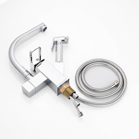 Grifo mezclador de cocina de pared con caño cromado