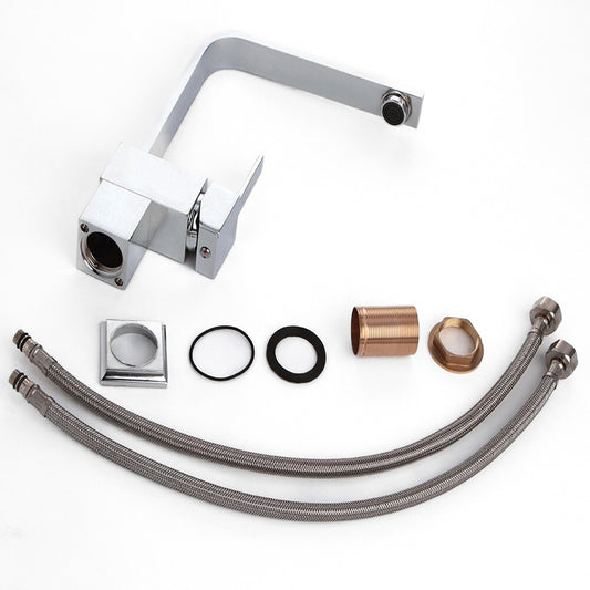 Grifo mezclador de cocina con caño en forma de cuello de cisne cuadrado cromado
