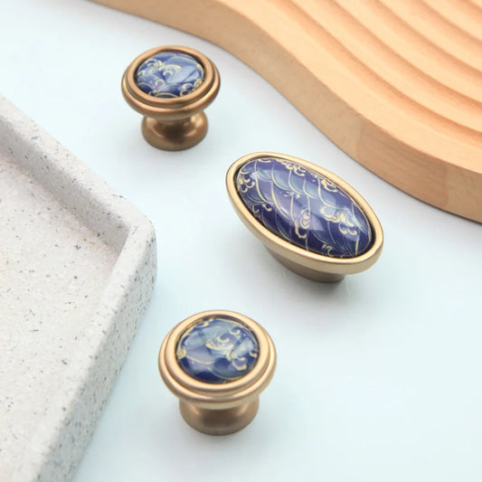 Knapp Möbel Mässing Sten | Unik Tiffanyblå